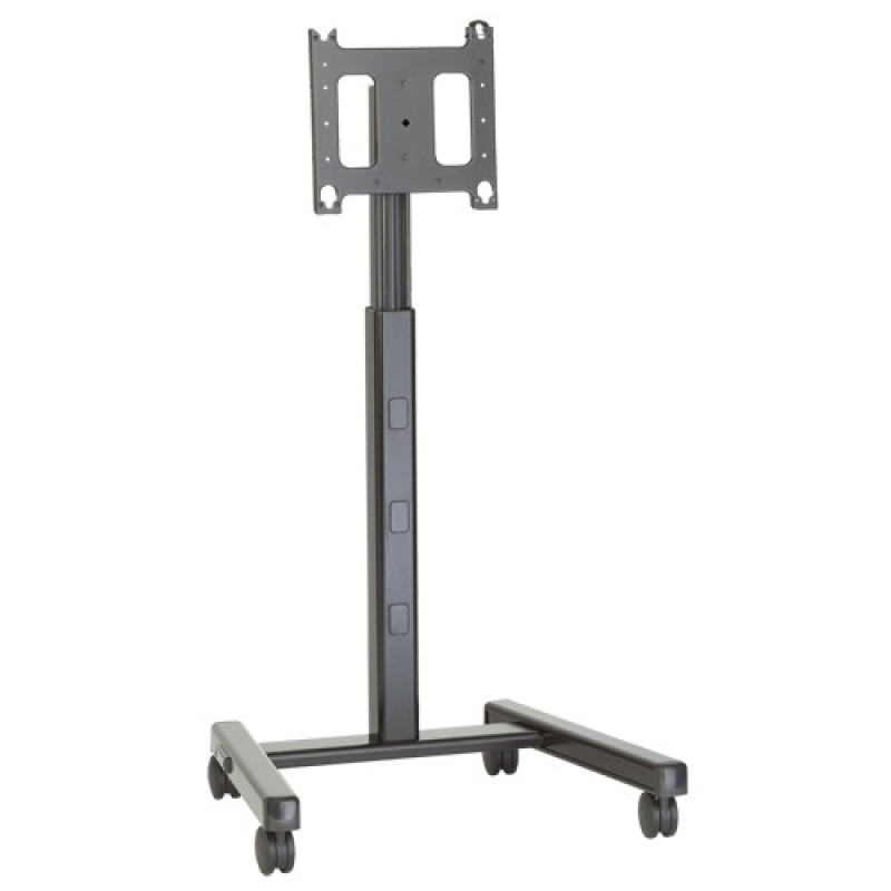 Устойчивая и презентабельная конструкция, благодаря особой форме основания легко проходит в лифты и узкие двери. Телескопическая стойка с регулировкой высоты (120-180см), есть регулировка наклона в обе стороны (+15°/-15° Centris™), возможна скрытая прокладка кабелей. 4 крупных колесика (2 снабжены стопорами-тормозами). Цвета - черный(b) или серебристый (s)