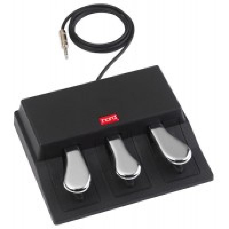 Блок из 3-х педалей выполняющих те же функции что и педали акустического рояля, правая педаль sustain, позволяет продлевать звучание нот, кроме того на Nord Stage и Piano 88 она позволяет имитировать призвуки механизма акустического инструмента, левая педаль soft (Una Corda) слегка снижает уровень проигрываемых нот, делает тон более приглушенным, средняя педаль sostenuto позволяет выборочно применять сустейн для проигрываемых нот, входит в комплект поставки Nord Stage 2 HA76, HA88, SW73, Nord Piano 88