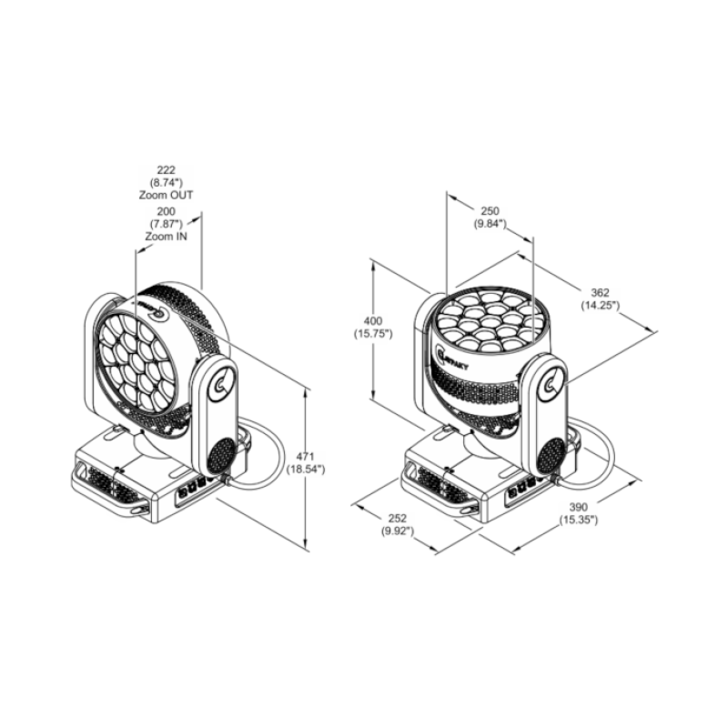Midi-B — приборполного вращения, оснащенный 19 светодиодами RGBW мощностью 40 Вт, теми же, которые ярко зарекомендовали себя в популярных приборах HY B-EYE и Mini-B.