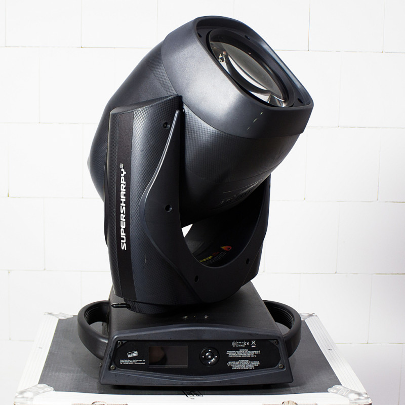 Clay Paky Supersharpy 2 вращающаяся голова на лампе Osram Sirius HRI 440W.Световой поток Supersharpy 2 – нечто совершенно иное, что мы видели ранее: в три раза ярче, чем Sharpy, большое колличество различий с предыдущей моделью, чем можно было бы ожидать, для начала сравните номинальнаую мощность двух ламп - 440 против 190. Благодаря этому невероятному потоку, свет Supersharpy 2 достигает невиданных ранее значений на средних расстояниях, что делает его первым прибором с низкой потребляемой мощностью, который действительно может бросить вызов поисковому прожектору. Однако, Clay Paky не остановился только на производстве «самого мощного светопотока»,Supersharpy 2 также обеспечивает максимальное качество и количество эффектов.