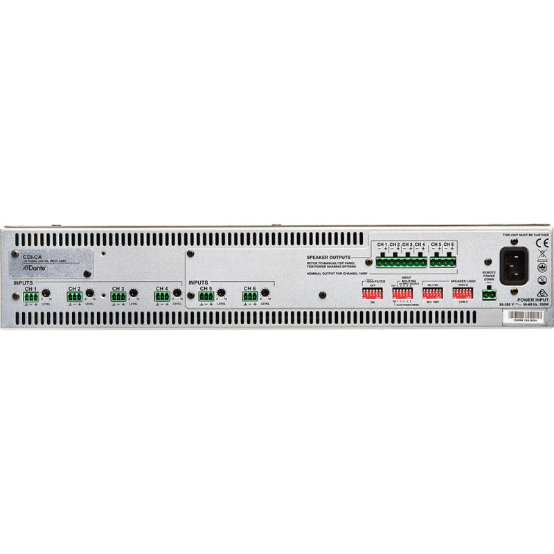 Модель Cloud CA6160 выдаёт 960 Вт общей мощности, которая равномерно распределяется между шестью каналами (по 160 Вт на каждый). В режиме с высоким импедансом (линия 70/100 В) выходную мощность можно интеллектуально распределять между каналами, что позволяет усилителям максимально экономно работать с различными типами или разным количеством громкоговорителей в любой части объекта.