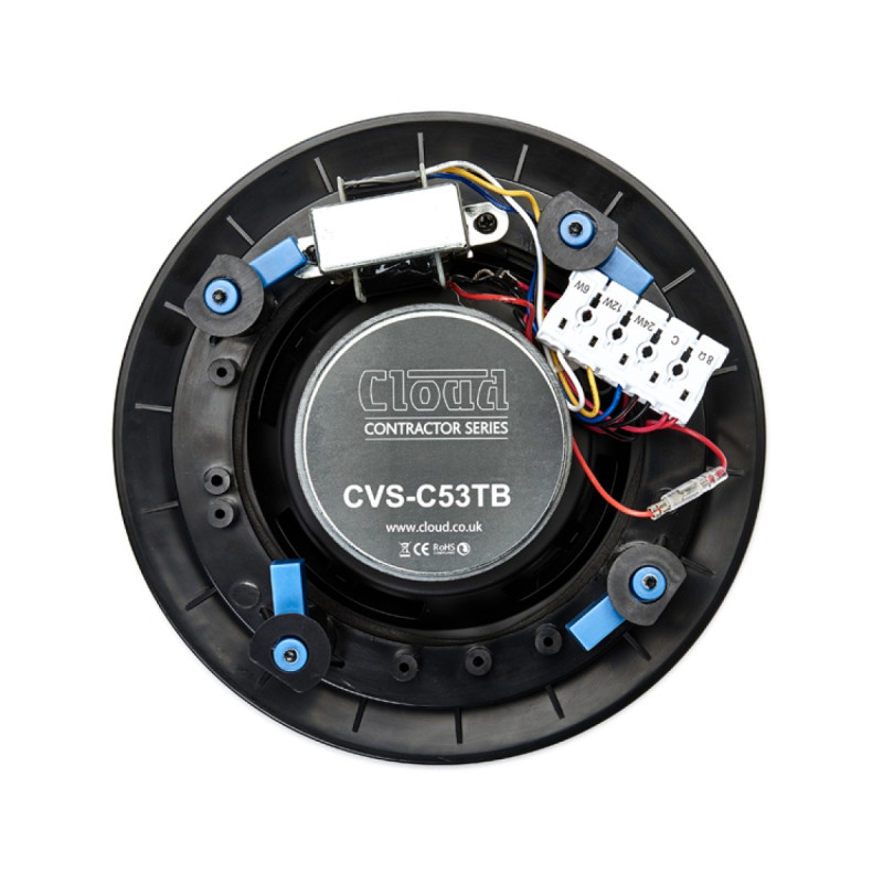 Cloud CVS-C53TW – это двухполосный коаксиальный потолочный громкоговоритель с 5,25-дюймовым НЧ динамиком и ВЧ твиттером 0,5 дюйма. Данный громкоговоритель входит в бюджетную серию Cloud CVS Contractor. Простые в установке и подключении, благодаря разъемам «Easy Connect». Подходят для фонового воспроизведения музыкального контента и передачи объявлений, обеспечивая высокую разборчивость речи. Громкоговоритель оснащен линейным трансформатором, который обеспечивает прямое подключение к системам постоянного напряжения 100 В.