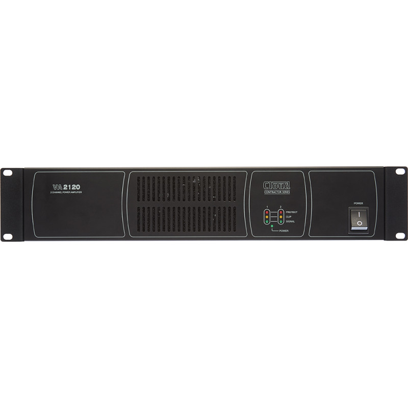 Cloud VA 2120 – экономичный двухканальный усилитель мощности, разработанный для трансляционной работы как по низкоомной, так и по высоковольтной линии. Эти усилители максимально просты в установке и эксплуатации и рассчитаны для работы в коммерческих инсталляциях (бары, кафе, рестораны, конференц-залы, отели и т.д.). VA2120 выдает 120 Вт на канал как при работе с низкоимпедансными (минимум 4 Ом), так и с распределительными линейными громкоговорителями 25/70/100 В.
