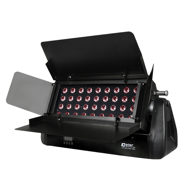 Color Imagination CITYARC 360F cветодиодный прожектор с 36 RGBW 4-в-1 светодиодами по 10 Вт. Класс защиты IP 65.CITYARC 360F имеет класс защиты IP65, яркий световой поток формируют 36 RGBW 4-в-1 светодиодов по 10 Вт каждый. Прожектор оснащен поворотной лирой и предлагает законченное решение для специализированных архитектурных проектов с высокими требованиями. Доступно три режима управления по DMX. Прочная конструкция прожектора, ровный и яркий световой поток - все это дает возможность реализации его функционала на различных площадках.