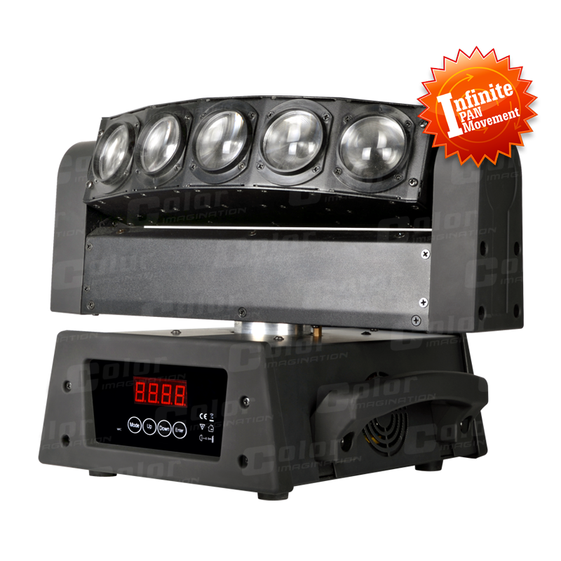 Color Imagination GFORCE 85 светодиодный подвижный прожектор 5х8Вт белых светодиодов, с бесконечным (непрерывным) движением по PAN.GFORCE 85 разработан с бесконечным (непрерывным) движением по PAN. К услугам пользователей 5х8 Вт. белых светодиодов создающих эффект бима, каждый светодиод управляется отдельно, очень быстрые и точные движения по PAN и TILT. К услугам пользователей 12 макрос функций и 8 встроенных программ. GFORCE 85 походит для малых и средних живых концертов, выступлений ди-джея, для клубов, пабов и т.д.LED Product Mark