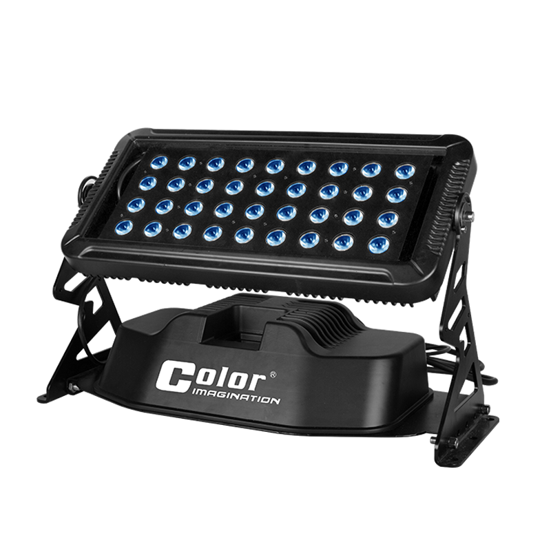 Color Imagination LEDARC 360F cветодиодный прожектор с 36 или 60 RGBW 4-в-1 светодиодами по 10 Вт. Класс защиты IP 65.LEDARC 360F имеет класс защиты IP65, яркий световой поток формируют 36 или 60 RGBW 4-в-1 светодиодов по 10 Вт каждый. Прожектор оснащен поворотной лирой и предлагает законченное решение для специализированных архитектурных проектов с высокими требованиями. Доступно три режима управления по DMX. Прочная конструкция прожектора, ровный и яркий световой поток - все это дает возможность реализации его функционала на различных площадках.