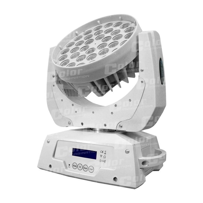 Color Imagination LEDWASH 360FW светодиодная «вращающаяся голова» 36х10Вт 4-в-1 RGBW светодиодов.Особенность LEDWASH 360FW это мощный луч формируется из 36 десяти ваттных диодов CREE. Каждый диод объединяет в себе 4 основных световых элемента мощностью 2,5 Вт (красный, зеленый, синий и белый). Три режима DMX 12/38/38 каналов. Шесть независимых сектора позволяют создавать различные световые эффекты. 16-биттный режим обеспечивает быстрое и плавное движение по Pan и Tilt. Все это идеально подходит для живых концертов, выступлений ди-джея, для клубов, пабов и т.д.