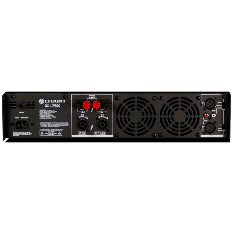 В серии усилителей мощности Crown XLS представлено пять различных моделей, в однотипных корпусах, с разными характеристиками. Стерео усилитель мощности Crown XLi 2500 имеет надёжную конструкцию корпуса, в сочетании с высокими показателями звукоусиления: 750 Вт. (4 Ом), 500 Вт (8 Ом), мост – 1500 Вт (8 Ом), а так же дополнительными функциями, значительно упрощающими настройку и обслуживание этого усилителя мощности.