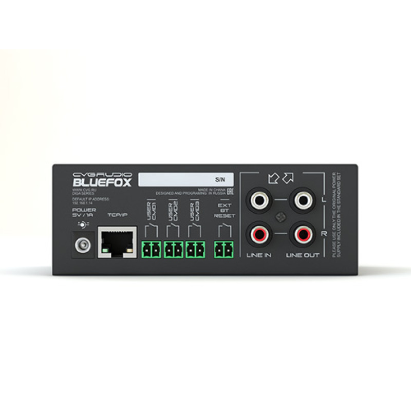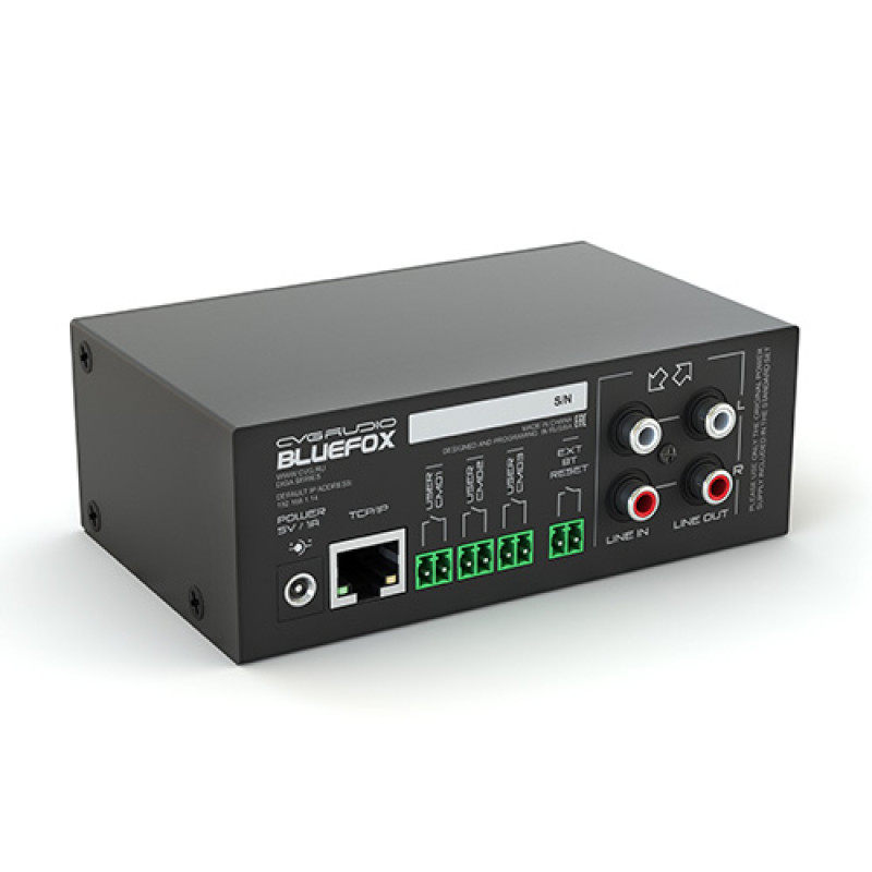 CVGAUDIO BLUEFOX - универсальное профессиональное решение для организации качественной беспроводной передачи аудио сигнала по BLUETOOTH каналу. BLUEFOX может быть настроен для работы как приёмник (RX) или как передатчик (TX) и, в соответствии с этим, имеет один линейный аудио вход (2RCA) и один линейный аудио выход (2RCA). При работе как приёмник BLUEFOX создаёт пару и принимает звуковой сигнал по блютуз каналу от любых внешних мобильных и стационарных устройств, имеющих передающий BLUETOOTH адаптер (смартфонов, планшетов, ноутбуков, компьютеров и так далее). Полученный сигнал преобразуется в аналоговый и далее в отличном качестве выводится через LINE OUT CVGAUDIO BLUEFOX. Поддерживаются современные аудио кодеки для высококачественной передачи сигнала без потерь (AptX / AptX LL и так далее).