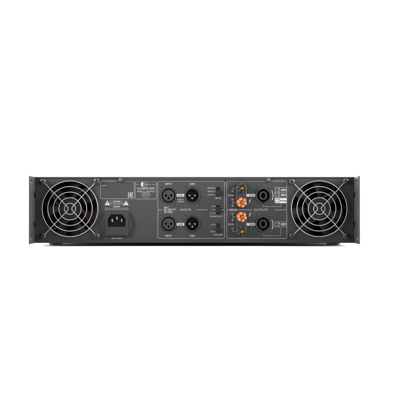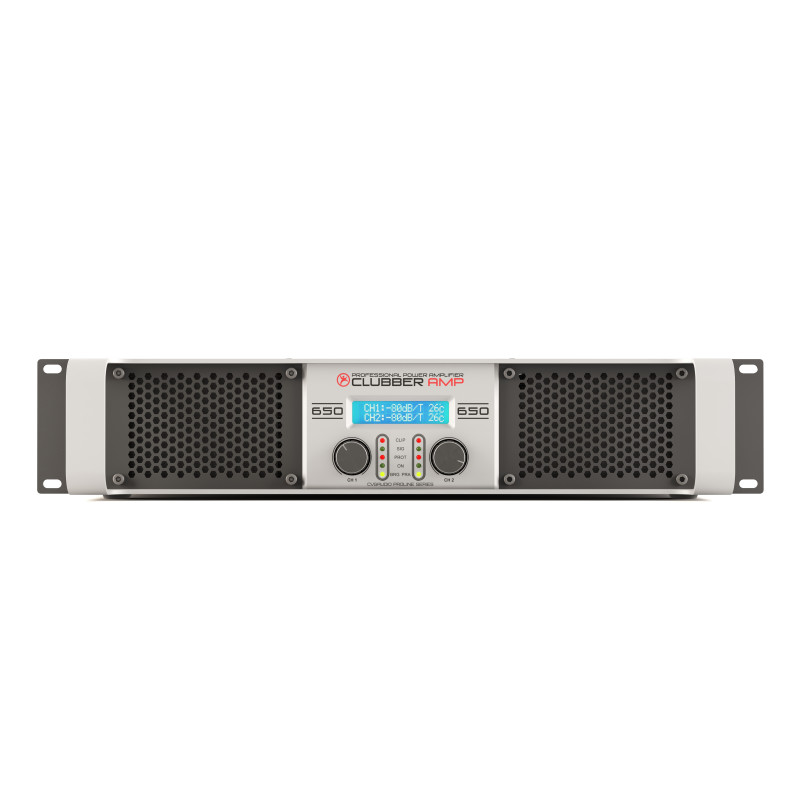 Усилитель имеет два балансных симметричных (Balance In) входа на разъемах XLR. Два балансных линкующих выхода (Link Out) также на разъемах XLR для подключения дополнительного усилителя мощности или других активных звуковых устройств. Чувствительность входа может настраиваться с помощью селектора на три положения 1,4V, 1V и 0,775V. Акустические системы могут быть подключены на выбор к клеммным зажимам или к разъемам SPEAKON. Усилитель может работать в трех режимах: STEREO - два раздельных канала усиления (Ch1 / Ch2) c раздельной регулировкой уровня громкости / PARALLEL - на два канала подается один сигнал с канала Ch1. Регулировка громкости раздельная для каждого канала / BRIDGE - два спикерных выхода суммируются, соответственно увеличивается мощность. Усилитель работает как одноканальный. Регулировка громкости производится с канала Ch1. Выбор режима работы усилителя производится с помощью специального селектора с задней стороны корпуса. В режиме STEREO и PARALLEL Clubber-650 может работать с сопротивлением нагрузи от 4x до 8ми ohm. В режиме BRIDGE допустимая нагрузка – 8ohm. Мощность CVGaudio Clubber-650 в режиме PARALLEL и STEREO - 4ohm - 1000W x 2 / 8ohm - 650W x 2, в режиме BRIDGE - 8ohm - 1625W.Стильный металлический корпус имеет высоту 2U и может быть установлен в монтажную стойку. Крепежные “уши” в стойку являются неотъемлимым элементом корпуса. На лицевой стороне располагается информационный жидкокристаллический экран, выводящий информацию о температуре нагрева радиатора выходного каскада усилителя и уровень громкости раздельно для каждого канала. Также на лицевой панели находятся непосредственно регуляторы уровня громкости и светодиодная индикация – наличие входящего сигнала - SIG, перегрузка – CLIP, сработка защиты - PROT, индикатор включения питания и активация режимов работы - PARALLEL или BRIDGE. Усилитель имеет постоянное активное охлаждение. Предусмотрены все необходимые системы защиты - защита от короткого замыкания, перегрузки, перегрева, защита по электропитанию с предохранителем. Усилитель имеет софт-старт и задержку подключения спикерного выхода на время переходных процессов при включении. Благодаря до мелочей продуманной схемотехнике и высокому качеству используемых компонентов работа CVGaudio Clubber - 650 (при соблюдении правил эксплуатации) будет безупречной в течении всего срока службы устройства.