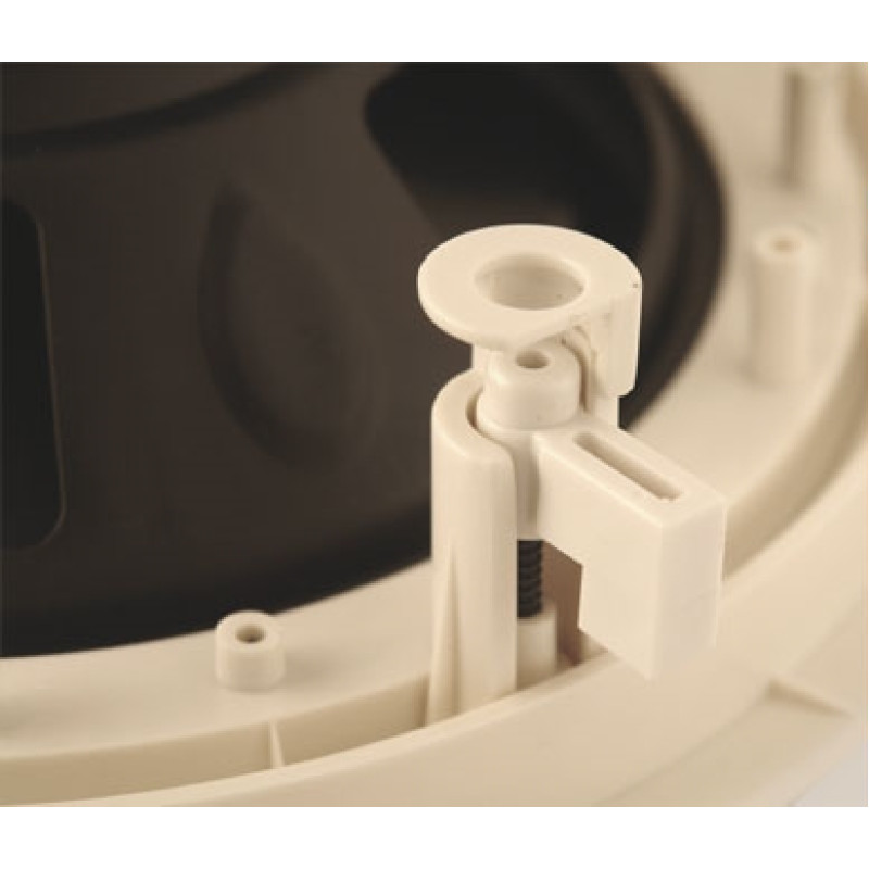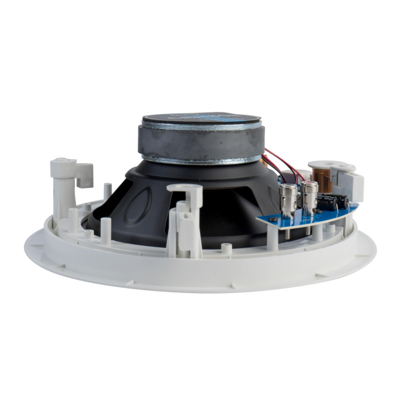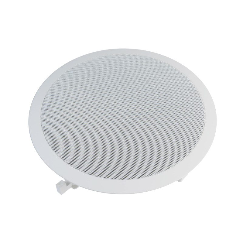 Корпус динамика изготовлен из качественного и стойкого к выгоранию ABS пластика белого цвета. Диффузор закрывается алюминиевой декоративной сеткой окрашенной в цвет корпуса. Корпус и сетку при необходимость можно перекрашивать в любой цвет, в комплекте есть специальный вкладыш для защиты диффузора при покраске пульверизатором. Для установки в подвесной потолок необходимо подготовить отверстие диаметром 253 мм. В комплект поставки входит картонный шаблон для разметки. Также в комплект поставки входят целлофановые перчатки, рекомендуем при установке динамика воспользоваться ими, чтобы не оставить грязные пятна на потолке. В подвесном потолке CRH808 фиксируется с помощью удобных пластиковых кронштейнов, после того как динамик помещен в отверстие в потолке необходимо закрутить четыре фиксирующих винта. При закручивание этих винтов кронштейны опускаются и прижимают корпус к потолку с обратной стороны.