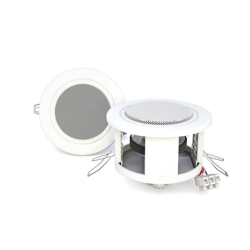 CVGaudio CRM2.5T предназначены для PublicAddress систем фонового звука в небольших помещениях с низким потолком. Данная модель уместно использовать для трансляции речевых сообщений и фоновой музыки в санузлах, примерочных кабинах, коридорах, офисных помещениях и других подобных местах небольшого объема. От динамика диаметром 6см нельзя требовать глубоких низких частот при проигрывании музыки, но разборчивость данная модель обеспечивает с лихвой.