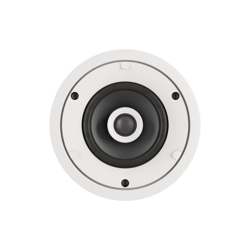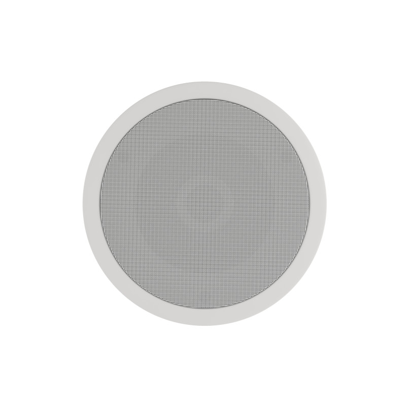 CVGaudio CX408 - встраиваемые в потолок, двухполосные, низкоомные, 4” (101,6mm) акустические системы home Hi-Fi класса. Благодаря очень небольшому размеру отлично подойдут для систем фонового звука в небольших комнатах, коридорах, санузлах и ванных комнатах, офисных помещениях и т. д. Такой небольшой размер у потолочной двухполосной акустики – большая редкость (габаритный размер видимой части акустической системы – 156mm). Помимо самостоятельного использования данная модель также может применяться в качестве небольших сателлитов в комплекте с потолочным, настенным или напольным сабвуфером. CX408 - низкоомная модель, импеданс динамика - 8ohm. Мощность - 20W (RMS), 40W(max). Купольный твитер (высокочастотный динамик) размером 3/4” (19мм) изготовлен из шёлка со специальной пропиткой. Крепление твитера имеет поворотный шарнирн, благодаря чему можно изменять его направление относительно центральной оси. В отличие от низких частот, которые по сути являются всенаправленными, высокие частоты имею достаточно небольшой угол раскрытия. В связи с этим точное позиционирование твитера в сторону слушателя может существенно улучшить качество звучания в данной точке в области высоких частот. Низкочастотный динамик (вуфер) размером 4” изготовлен из плотной целлюлозы, диффузор установлен на гибком резиновом подвесе. Одной из основных особенностей CVGaudio CX408 является то, что в стандартный комплект поставки данной модели входит две декоративных сетки - классическая, при установке которой остаётся видимой небольшая пластиковая рамка, и второй, более современный вариант - сетка абсолютно целиком скрывающая корпус акустической системы. Таким образом CVGaudio CX408 можно гармонично вписать в любой интерьер. Стандартно корпус изготовленный из качественного ABS пластика и металлическая декоративная сетка поставляются в белом цвете. При необходимости акустическая система может быть перекрашена в любой цвет, при этом при использовании безрамочной сетки, которая полностью скрывает корпус, перекрашивать нужно только сетку. В CVGaudio CX408 для деления частот между высокочастотным и средне-низкочастотным звеном используется тщательно рассчитанный фильтр второго порядка собранный на качественных, специально предназначенных для акустики компонентах. Для установки в подвесной потолок необходимо отверстие диаметром – 141mm. Свободное запотолочное пространство для установки данной модели должно быть не меньше – 71mm. В подвесном потолке CX408 фиксируются с помощью удобных пластиковых кронштейнов. После того, как динамик помещен в отверстие в потолке, необходимо закрутить четыре винта. При закручивание этих винтов кронштейны опускаются и прижимают корпус к плоскости подвесного потолка с его внутренней стороны. Приходящий спикерный кабель фиксируется с помощью надежных металлических кабельных терминалов. Размер отверстия терминала позволяет зажать кабель сечением до 2,5мм.