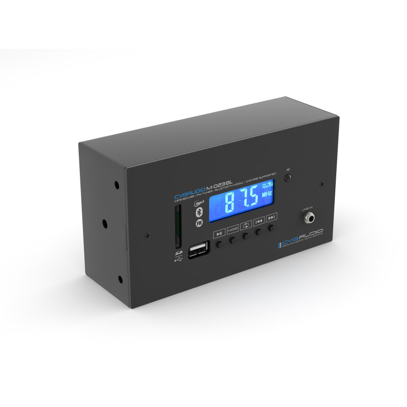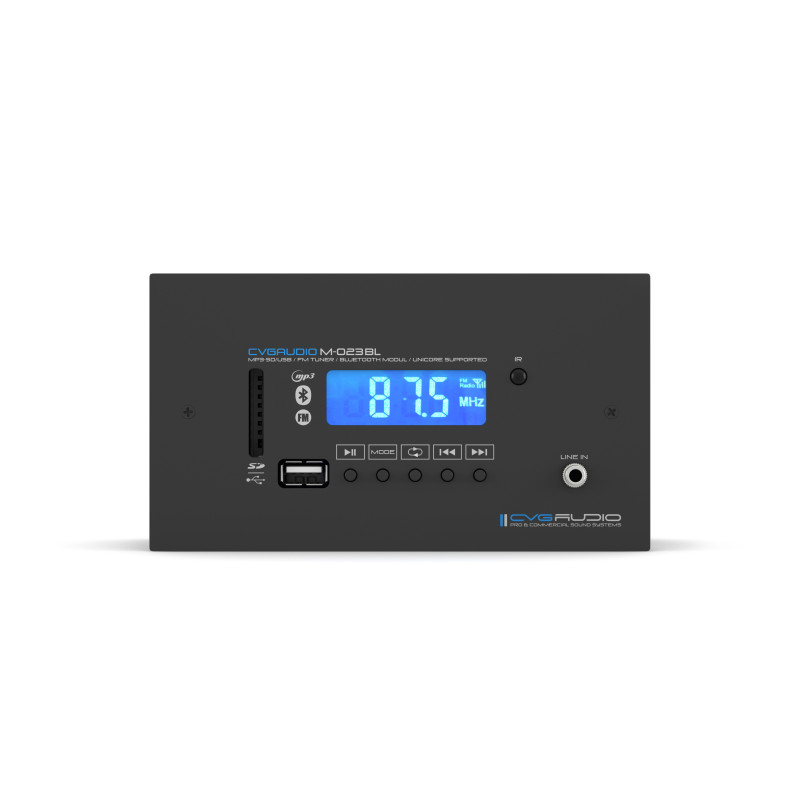 CVGaudio M-023Bl – компактный профессиональный мультимедиа плеер с MP3, FM и Bluetooth, предназначенный для использования в качестве источника сигналов в комплексных системах фонового озвучивания и речевого оповещения зданий. Он выполнен в компактном металлическом корпусе и предполагает следующие варианты размещения: настольное, настенное (с накладным креплением), врезное (установка в подрозетник) или же в RACK стойку (крепления в комплекте). Такая особенность позволит с легкостью разместить устройство в любом наиболее удобном месте, сто станет весомым преимуществом при его использовании в качестве зонального плеера в помещениях фитнес клубов, салонов красоты и СПА, ресторанах, кафе, магазинах и т.д.