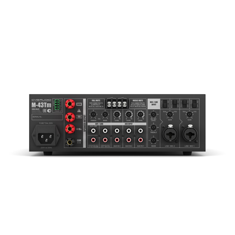 CVGAUDIO M-43TM - Профессиональный микшер – усилитель с встроенным модулем источника сигнала предназначенный для организации качественной трансляции фоновой музыки и речевого оповещения в торговых и общественных помещениях.