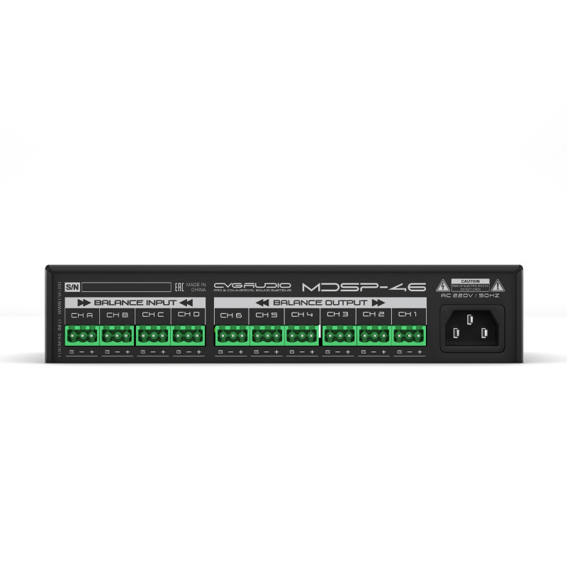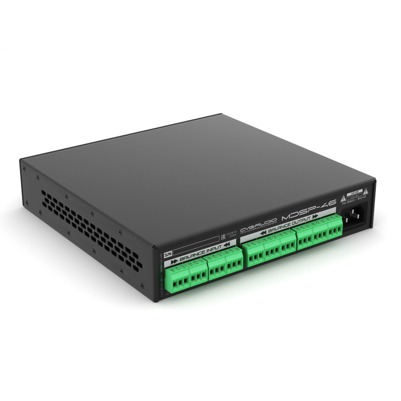 Предназначен для обработки и настройки звукового сигнала в профессиональных звуковых системах, позволяет существенно улучшить качество звучания, придать недоступную без дополнительной обработки читаемость, прозрачность и насыщенность звучанию Вашей аудио системы, минимализировать негативное влияние помещения на общее качество звучания и так далее. В современных инсталляциях звуковой процессинг является практически обязательным элементом, он позволяет даже при небольшом бюджете поднимать качество звучания на совершенно новый качественный уровень. DSP процессор CVGAUDIO MDSP-46 предназначен для использования как в составе профессиональных звуковых систем высокой мощности, так и для корректировки АЧХ любого вида акустики в системах коммерческого звука.