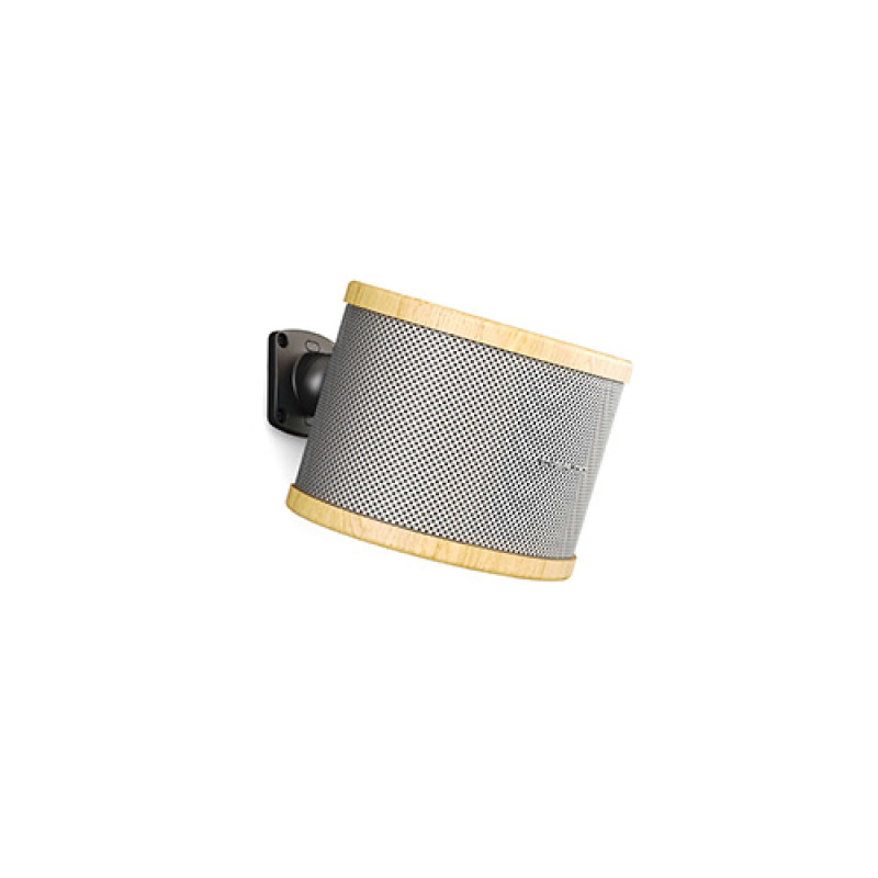 Запоминается очень оригинальным современным дизайном и конструктивом. Сферический корпус полностью опоясывается декоративной металлической сеткой, что придает данной модели уникальный, безошибочно узнаваемый внешний вид. Корпус изготовлен из MDF, конструктивно тип корпуса – “закрытый ящик”. Покраска – структурированный полиуретан (полимочевина) черного цвета. В комплект поставки входит металлический шарнирный кронштейн для установки на стену или потолок. Он позволяет поворачивать корпус в любой плоскости и после позиционирования надежно фиксировать в выбранном положении. Подключение к спикерной линии осуществляется с помощью четырех-контактного съемного разъема типа EuroBlock. Разъем имеет вход и выход для параллельного подключения следующей акустической системы. Кабельная часть разъема надежно фиксируется к корпусу акустической системы с помощью двух винтов.