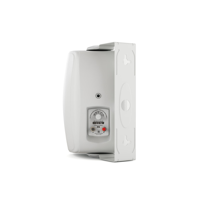 Корпуса акустических систем серии ODF имеют современныц, элегантный дизайн и изготовлены из прочного ABS пластика стойкого к негативному воздействию солнечного света, пыли и влаги. Все модели серии ODF благодаря герметичному корпусу могут быть установлены как в помещении, так и на улице (предпочтительно под навесом). Уровень защищенности корпуса от проникновения внутрь влаги и пыли – IP44. Акустические системы ODF выпускаются в белом ODF416TW и черном ODF416TBl цвете. В комплекте с динамиком поставляетя удобный п-образный кронштейн для установки акустической системы на стену или потолок. Кронштейн позволяет поворачивать корпус динамика в одной плоскости. Также Вы можете совместно с ODF416T использовать опциональный шарнирный кронштейн CVGaudio WSM-02, который позволяет поворачивать ее в любой плоскости. Данные кронштейны также , как и акустические систеы выпускаются в двух цветах (белый, черный).