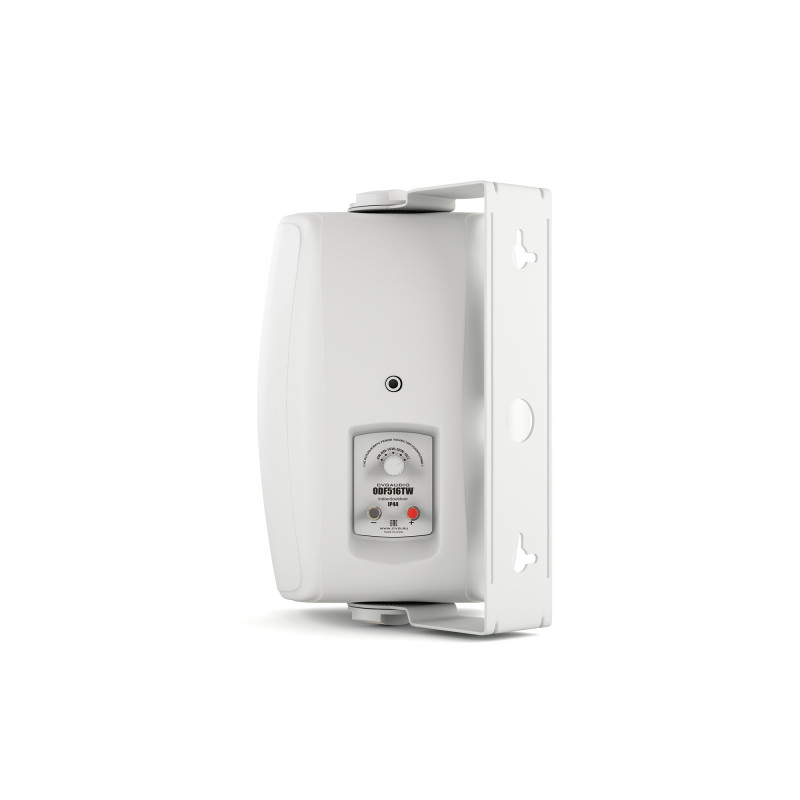 Корпуса акустических систем серии ODF имеют современный, элегантный дизайн и изготовлены из прочного ABS пластика стойкого к негативному воздействию солнечного света, пыли и влаги. Все модели серии ODF благодаря герметичному корпусу могут быть установлены как в помещении, так и на улице (предпочтительно под навесом). Уровень защищенности корпуса от проникновения внутрь влаги и пыли – IP44. Акустические системы ODF выпускаются в белом ODF516TW и черном ODF516TBl цвете. В комплекте с динамиком поставляетя удобный п-образный кронштейн для установки акустической системы на стену или потолок. Кронштейн позволяет поворачивать корпус динамика в одной плоскости. Также Вы можете совместно с ODF516T использовать опциональный шарнирный кронштейн CVGaudio WSM-02, который позволяет поворачивать ее в любой плоскости. Данные кронштейны также , как и акустические систеы выпускаются в двух цветах (белый, черный).