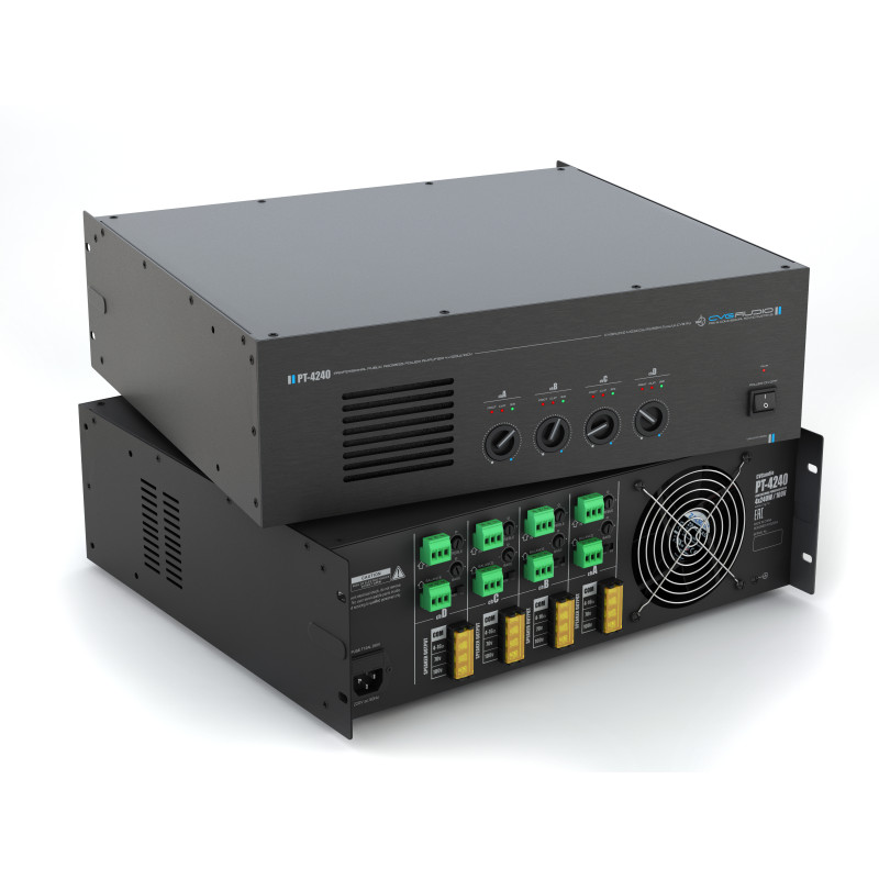 CVGAUDIO PT-4240 - Профессиональный, четырехканальный, высококачественный усилитель мощности для систем трансляции фоновой музыки и речевого оповещения (Public Address).