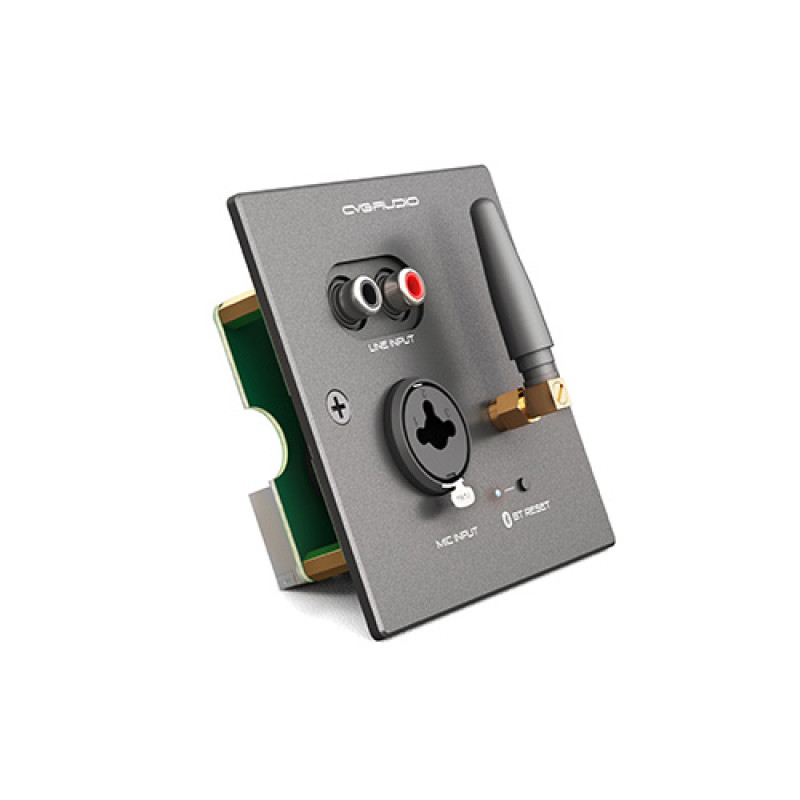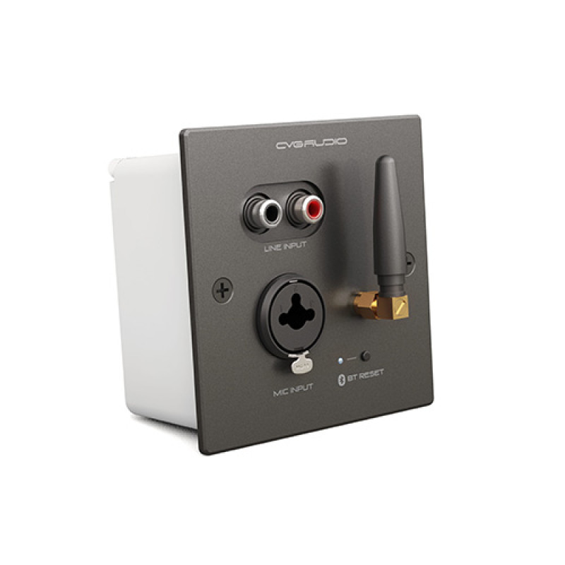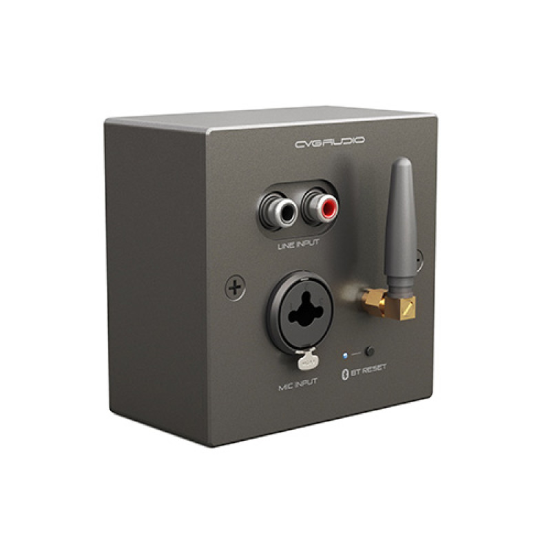 На лицевой части панели размещены два (2) входа: линейный, небалансный, разъем 2RCA и микрофонный, балансный, универсальный разъем XLR/TRS. Входы дублируются коннекторами 2х EuroBlock 3-pin, которые расположены на задней части устройства с целью скрытого подключения в случае необходимости. Также предусмотрен беспроводной тип подключения посредством модуля Bluetooth (версия 5.1, внешняя антенна, дальность до 30м при прямой видимости). В этом случае источником сигнала становится любой мобильный гаджет. Для микрофонного входа есть возможность подключить фантомное питание (+12В) и приоритет (DIP-переключатели).