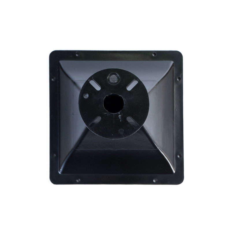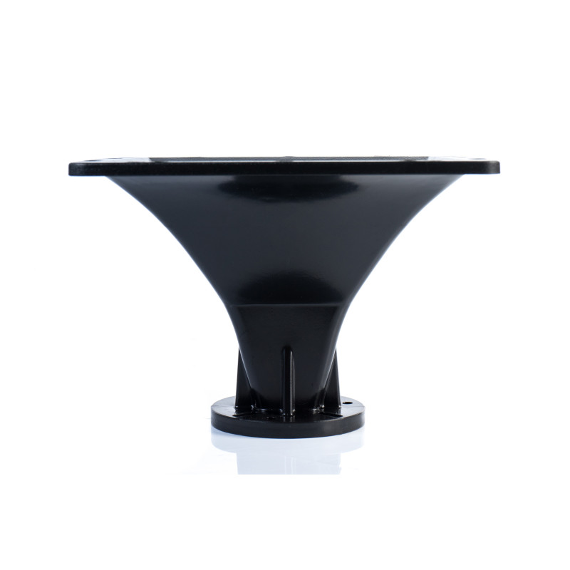 Имеет четыре точки для крепления на винты M6. В местах крепления предусмотрены продольные выточки для возможности установки драйверов с не стандартной посадкой. CVGaudio RDP19070 формирует диаграмму направленности шириной 90 х 75 градусов (горизонталь / вертикаль). При этом часть рупора, которая крепится к корпусу акустической системы имеет идентичную геометрию по всем четырем сторонам. Благодаря этому к одним и тем же креплениям можно установить рупор в положение как для вертикальной повески акустической системы, так и горизонтальной. Рупор изготовлен из качественного черного ABS пластика, толщина отливки в области фланца - 8мм. Благодаря этому стенки рупора очень прочные, исключены нарушения геометрии рупора и его поломка даже при использовании совместно с самыми тяжелыми ферритовыми драйверами. К корпусу акустической системы рупор крепится с помощью восьми винтов (по два на строну). Данная модель отлично подходит для использования совместно с высокочастотным драйвером CVGaudio DR510.