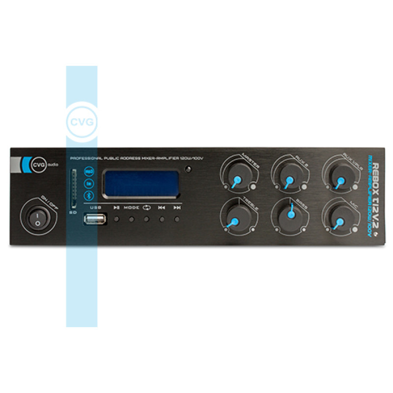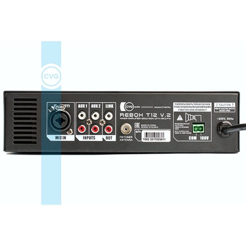 CVGaudio ReBox-T12 – Миниатюрный профессиональный микшер-усилитель с встроенным MP3 / FM / Bluetooth модулем для систем трансляции фоновой музыки и речевого оповещения.
