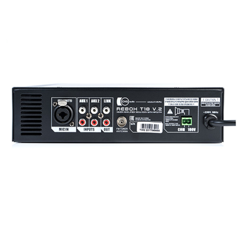 CVGaudio ReBox-T18 – Миниатюрный профессиональный микшер-усилитель с встроенным MP3 / FM / Bluetooth модулем для систем трансляции фоновой музыки и речевого оповещения. Благодаря своему миниатюрному размеру и продуманной эргономике данный усилитель является уникальным в своем формате устройством.