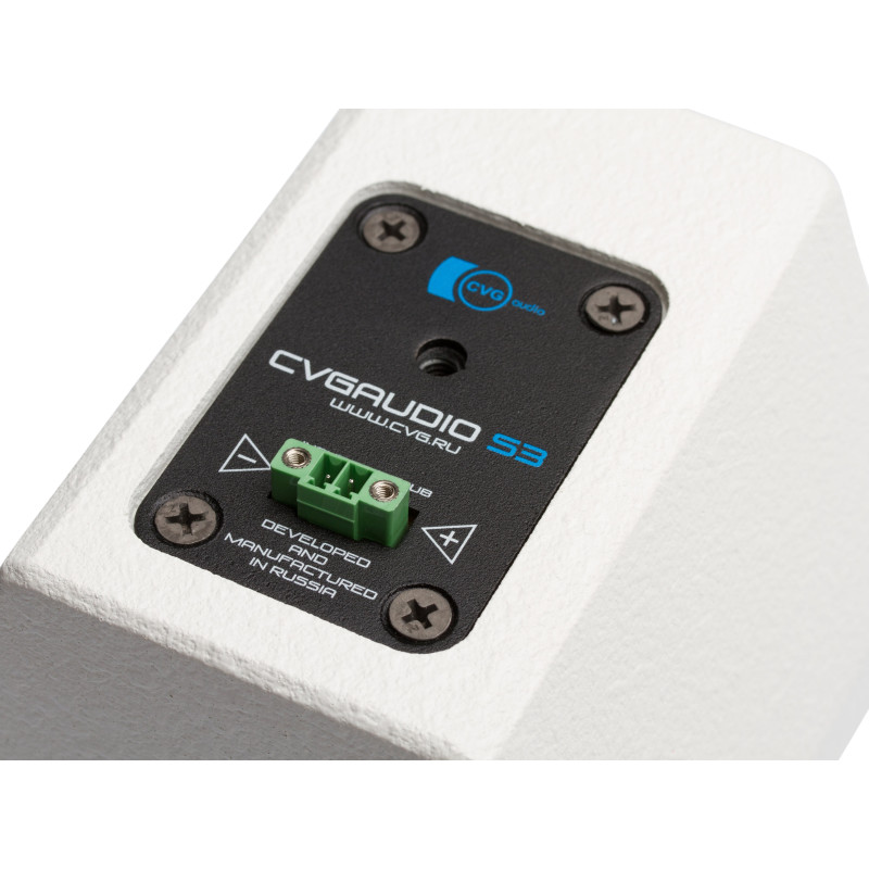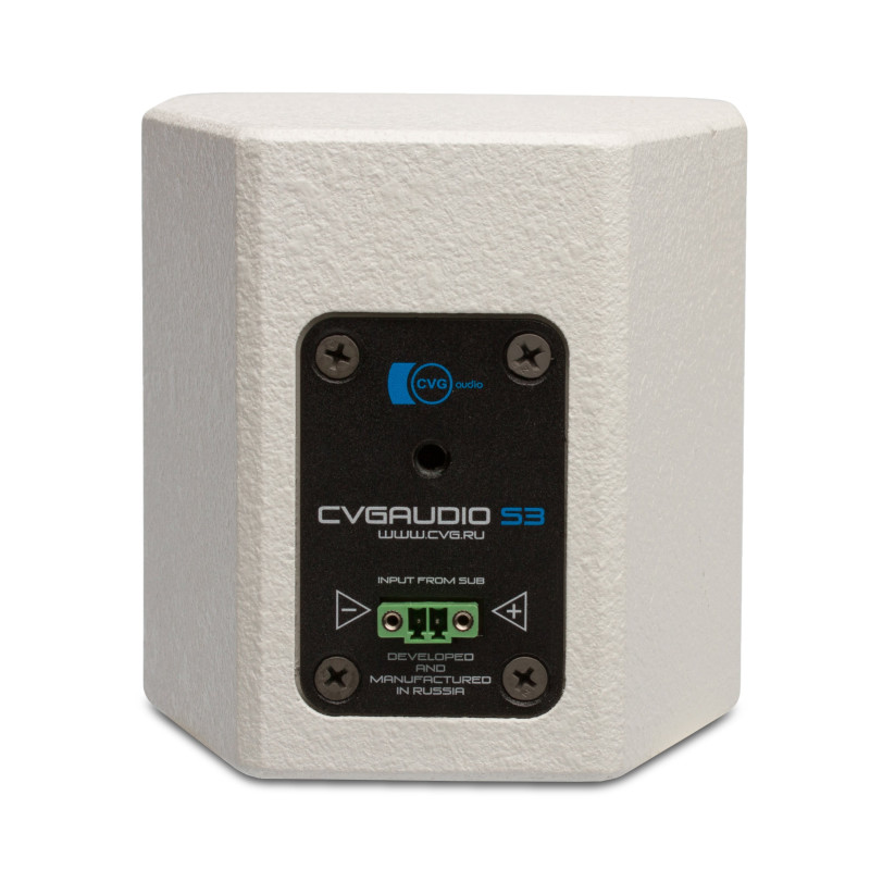 В данной акустической системе используется профессиональная динамическая головка от легендарного испанского производителя Beyma. Благодаря этому, не смотря на миниатюрный размер, акустическая система SAT-S3W имеет свойственную качественной профессиональной акустике высокую чувствительность и действительно большую для миниатюрного 3” динамика мощность – RMS 30W / MAX 60W. Импеданс динамика – 8ohm. Корпус SAT-S3W изготовлен из высококачественной 12mm фанеры, покрытие – белая краска Warnex. Лицевая сторона корпуса закрыта декоративной металлической сеткой окрашенной в цвет корпуса. В целом модель имеет современный, яркий дизайн и будет гармонично вписываться в модные интерьеры, особенно реализованные в стиле лофт. В комплекте с акустической системой поставляется металлический шарнирный кронштейн CVGaudio WSM-02W белого цвета. Кронштейн позволяет установить и зафиксировать корпус акустической системы под любым необходимым углом. Приходящие от усилителя акустические кабели подключаются с помощью съемного разъема типа EuroBlock. Разъем имеет два дополнительных винта с помощью которых он надежно фиксируется к корпусу динамика. При использовании CVGaudio SAT-S3W совместно с сабвуфером рекомендуем рассматривать вариант комплекта CVGaudio SUBSET. Комплект состоит из четырех сателлитов SAT-S3W и сабвуфера SUB-ONE-W. В данном случае сателлиты подключаются к сабвуферу, а от сабвуфера уже идет спикерный кабель к выходным контактам усилителя. Внутри сабвуфера встроен специальный корректирующий фильтр, который делаем оптимальной частотную характеристику CVGaudio SAT-S3W и также задает правильное соотношение громкостей сабвуфера и сателлитов. Таким образом система не требует никаких дополнительных настроек и корректирующих приборов для оптимального, корректного звучания. Отдельно хотим отметить, что акустические системы CVGaudio SAT-S3W полностью разработаны и собираются на нашей фабрике в России. Тщательный контроль процесса производства и качества используемых материалов гарантирует отличное звучание и бесперебойную работу в течении всего срока службы.