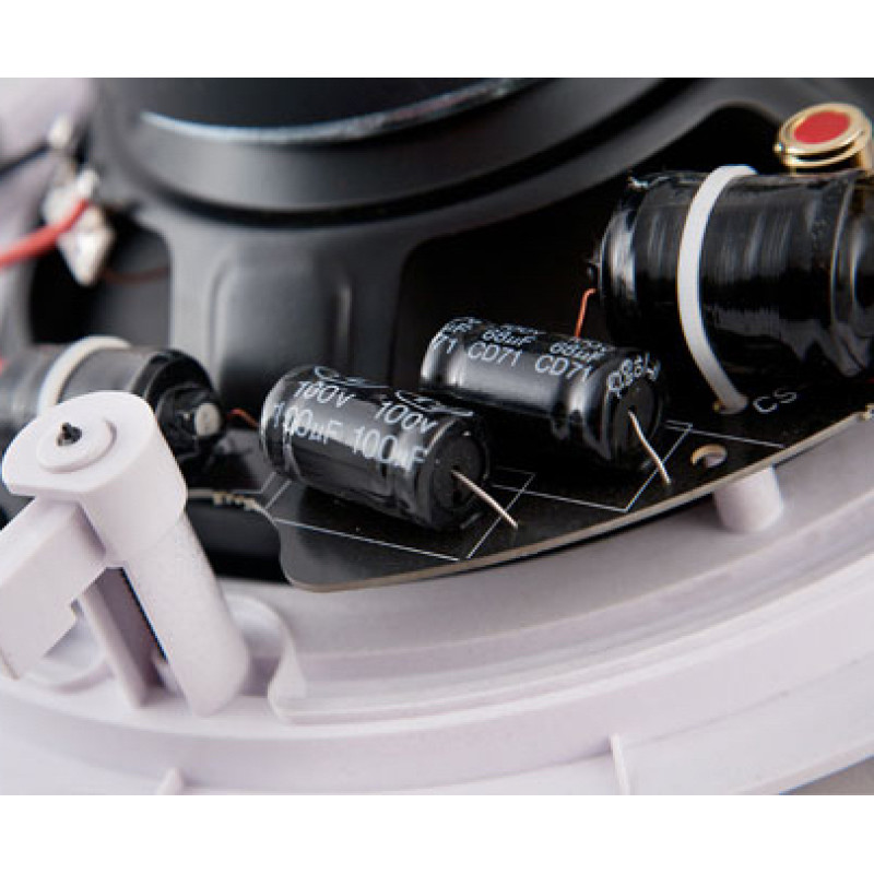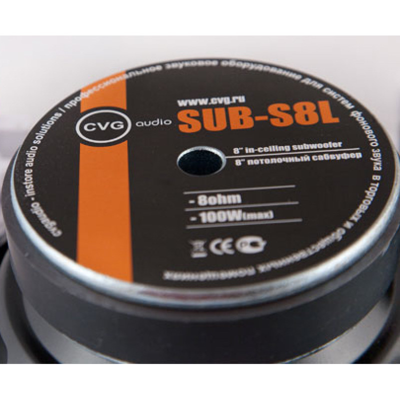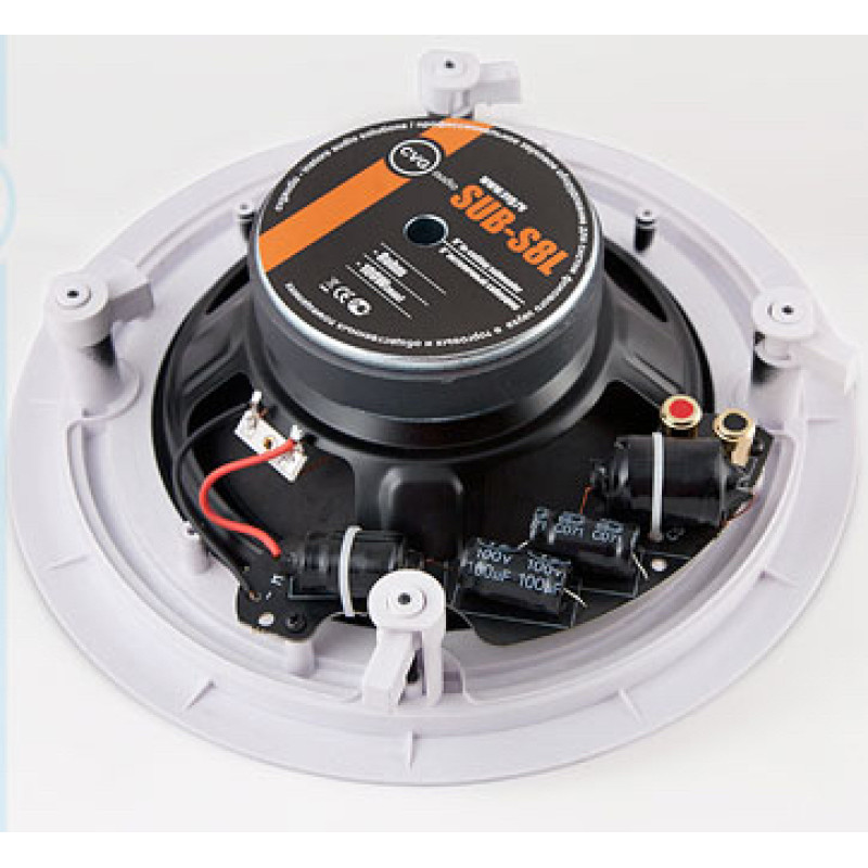Данная модель предназначена для работы в составе Low-impedance (низкоомных) звуковых систем и имеет импеданс 8ohm. Максимальная мощность сабвуфера - 100W (RMS - 70W). Сабвуфер не имеет акустического оформления (запотолочного корпуса) - только лицевую рамку с декоративной сеткой, как традиционные потолочные динамики. Благодаря этому CVGaudio SUB-S8L может быть встроен в подвесной потолок или стену с минимальным запотолочным пространством (10 см). Диаметр посадочного отверстия сабвуфера - 250mm. Отсутствие корпуса не позволяет добиться такого мощного низа как у тяжелых фазоинверторных сабвуферов, но для того чтобы добавить плотности и объема звучанию музыкального фона, легких сабвуферов CVGaudio SUB-S8L зачастую вполне достаточно, особенно в пространстве кафе или небольшого магазина, где не высокий уровень внешнего шума. Достаточно просто один раз отключить сабвуферы и на контрасте Вы сразу ощутите на сколько существенно они добавляют фактуры и грубины звучанию фоновой музыки. Разумно для сабвуферов выделить отдельный канал на усилителе или использовать отдельный усилитель - это даст возможность регулировать баланс между сабвуферами и сателитами. Данная модель имеет 8' дюймовый динамик с мощной магнитной системой. Диффузор изготовлен из прессованной целулозы высокой плотности с пропиткой, подвес из специального гибкого паралона. CVGaudio SUB-S8L имеет встроенный пассивный Low-pass фильтр - кроссовер, который обрезает все частоты выше 200Hz. Это позволяет использовать данную модель сабвуфера с обычным усилителем, без установки дополнительных устройств. Для более тонкой настройки звучания сабвуферов можно использовать внешний активный кроссовер. Корпус сабвуфера выполнен из белого, стойкого к воздействию солнечного света и пыли ABS пластика. Диффузор сабвуфера скрыт окрашенной в цвет корпуса декоративной защитной металлической сеткой. Фиксация в потолок осуществляется с помощью четырех пластиковых поворотных кронштейнов, которые надежно прижимают корпус сабвуфера к подвесному потолку и надежно фиксируют его с обратной стороны. Для подключения приходящего спикерного кабеля используются два металлических самозажимных клеммных терминала с отверстием для кабеля размером до 5mm. Тщательно отобранные компоненты и традиционно отличное качество сборки гарантируют долгую и бесперебойную работу CVGaudio SUB-S8L.