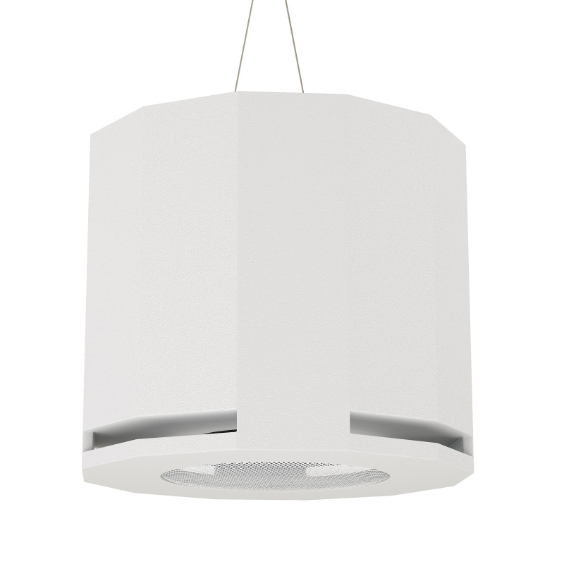 Для подвеса сабвуфера на верхней крышке предусмотрены два кольца за которые должен крепиться трос. Комплект для подвеса не входит в стандартную комплектацию, но может быть приобретен опционально – CVGAUDIO SM-SUB. Цвет корпуса сабвуфера белый, покрытие – очень прочный структурированный полиуретан (полимочевина). CVGAUDIO SUBone model D-6/BL имеет не большой, аккуратный корпус размером – h=325mm/d=380mm. Корпус выполнен в виде трубы имеющей 12 граней. Динамик скрыт декоративной защитной сеткой окрашенной в цвет корпуса. Опционально, по отдельному запросу возможны варианты покраски корпуса в цвет отличный от штатного.