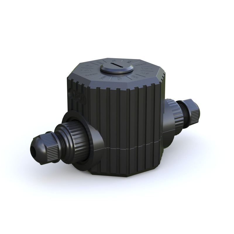 Герметичный корпус трансформатора изготовлен из стойкого к климатическим условиям черного ABS пластика и может быть расположен непосредственно на грунте или даже присыпан землей (избегайте для установки трансформатора места со стоячей водой).Трансформатор имеет пять отводов различной мощности и позволяет подключить акустическую систему на 2,5 / 5 / 10 / 15 или 20W в режиме 100V. Выбор мощности осуществляется с помощью селектора на верхней части корпуса TOD-20. В основном TOD-20 используется совместно с ландшафтной акустикой (например CVGaudio Flo308). Чтобы обеспечить абсолютную герметичность корпуса трансформатора входной и выходной терминалы для кабельного подключения имею специальные наворачиваемые фитинги. Для подключения необходимо использовать кабель круглого сечения диаметром 6-8мм. При затягивании фитинга специальная резиновая шайба плотно облегает кабель и препятствует проникновению внутрь влаги. Если для подключения использовать спикерный кабель другой геометрии, шайба будет не плотно прилегать и влага может проникнуть внутрь кабельного терминала. Из нашего каталога для подключения CVGaudio TOD-20 оптимально подойдет акустический кабель CASTCABLE SJB17.OFC.1,045. Он имеет дополнительную климатическую изоляцию и отлично подходит для outdoor инсталляций. Приходящий и исходящий кабели фиксируются к терминалу трансформатора надежным винтовым зажимом.