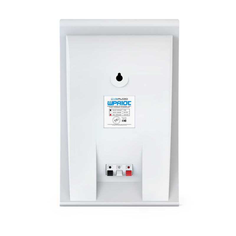 CVGaudio WPA10T имеют установленный внутри корпуса согласующий 100V трансформатор. В связи с этим их можно использовать только в составе 100V трансляционных линий с трансляционными 100V усилителями (в каталоге CVGaudio это усилители серий AT, ATP, MA и TR), низкоомного подключения в данных акустических системах не предусмотрено. На обратной стороне корпуса акустической системы установлены три удобных самозажимных клеммных терминала. Черный контакт используется для подключения COM (-) сигнала от трансляционного усилителя. Белая и красная клеммы отвечают соответственно за 5W и 10W подключение 100V трансформатора акустической системы к 100V (+) выходу трансляционного усилителя. Таким образом акустическая система может быть подключена на одну из двух доступных мощностей в 100V режиме.