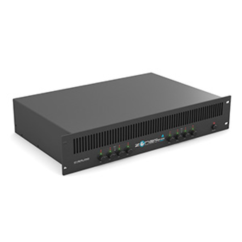 Применяется в трансляционных акустических линиях с напряжением 100В. Поддерживает восемь (8) выходных каналов на акустику, мощность на выходе каждого составляет сто восемьдесят ватт (8 х 180 Вт). Акустические выходы реализованы на разъемах 2-pin EuroBlock. Диапазон акустических частот от 80 Гц до 18.5 кГц, соотношение сигнал/шум ≥90 дБ, чувствительность 0,775В, искажения THD < 0.1% (1 кГц, 1/3 мощности).
