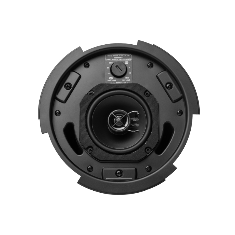 Благодаря прочному стальному корпусу и полипропиленовой передней панели, она обеспечивает конусное диффузорное звучание 125°. Разработанная для гибкой адаптации, она оснащена 4-контактным разъёмом Phoenix для удобного параллельного подключения. DECO-40-T работает с номинальным импедансом 8 Ом или в линейной системе 100 В, с настройками мощности 10 Вт, 20 Вт и 30 Вт, доступными на передней панели. Благодаря среднеквадратичной мощности 50 Вт, пиковой мощности 200 Вт и максимальному пиковому уровню звукового давления 112 дБ, она обеспечивает чистый и мощный звук.