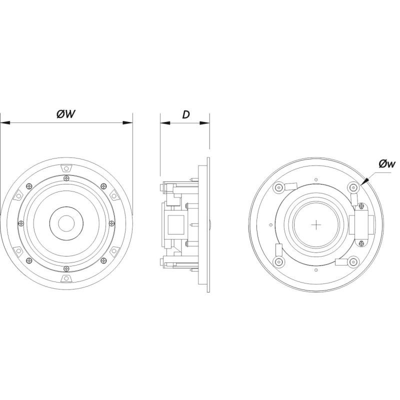 Она оснащен линейным трансформатором мощностью 6 Вт и напряжением 100 В. Специально разработана для работы с высоким сопротивлением. Оснащена 5,25-дюймовым двухконусным динамиком и 1-дюймовой звуковой катушкой. Бескаркасная конструкция решетки означает, что система выступает всего на 3 мм от потолка, что делает ее практически невидимой.