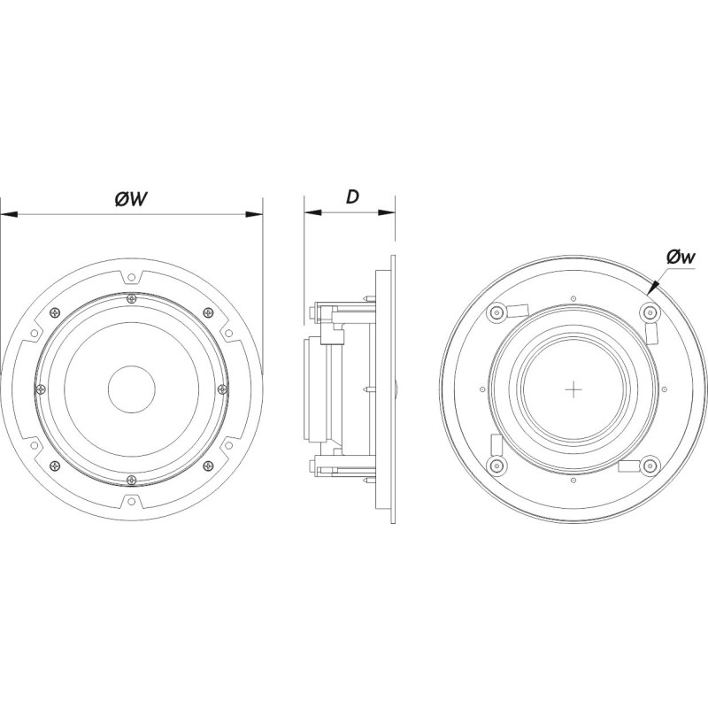 DAS Audio DECO-6 - Пассивная двухполосная потолочная акустическая система с 6,25-дюймовым низкочастотным конусным громкоговорителем и 1-дюймовым твитером с мягким куполом, охлаждаемым ферромагнитной жидкостью со встроенным дифракционным кольцом.