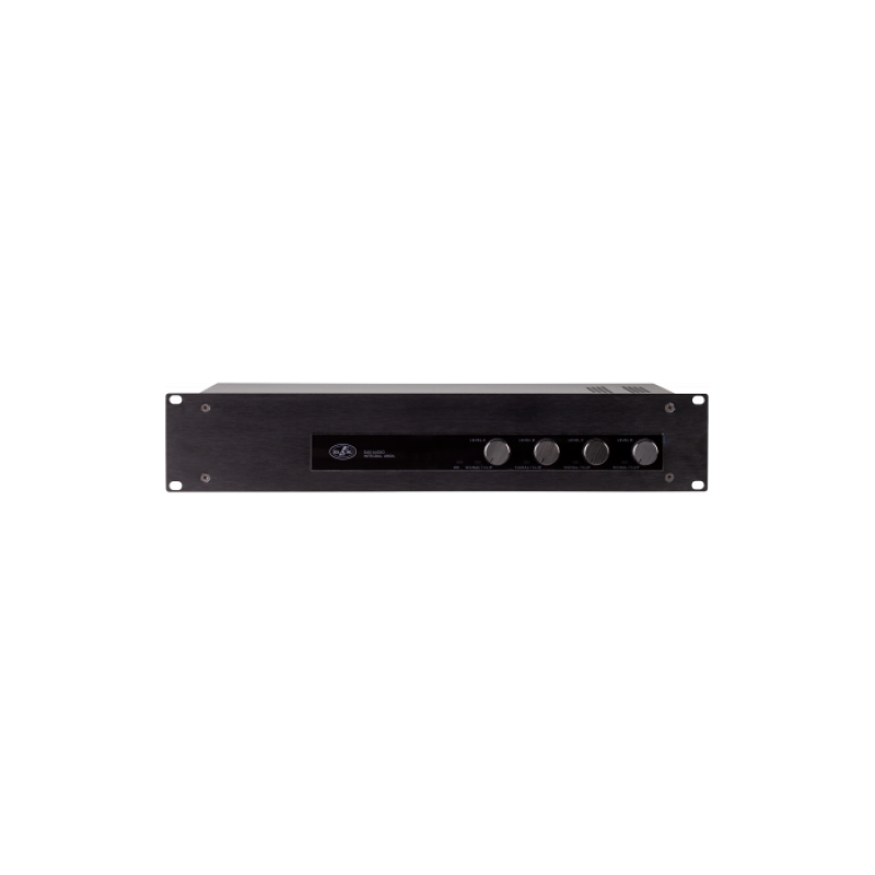 Усилитель выдает 4x400 Вт при 4 Ом и может использоваться в режиме моста для линий с высоким сопротивлением 100 В / 70 В (обеспечивая 2x800 Вт общей мощности). Передние светодиоды предоставляют информацию о наличии сигнала, ограничителях и состоянии защиты. На задней панели пользователь может настроить режим стерео / моста и задействовать фильтр высоких частот 80 Гц 12 дБ / октава.