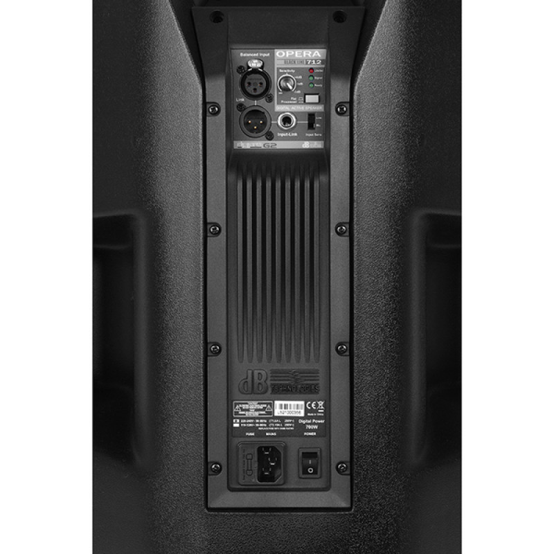 dB Technologies OPERA 712 BL – профессиональный активный двухполосный громкоговоритель серии OPERA Black Line, которая отличается защитной решеткой по всей фронтальной поверхности и большим объемом воздуха внутри кабинета, что даёт больше нижних частот.
