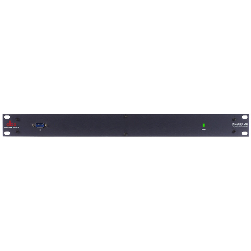 dbx 641 аудио процессор для многозонных систем. 6 входов - 2 балансных мик/лин Phoenix, 4 RCA; 4 балансных Phoenix выхода, управление - GUI интерфейс - с компьютера 2 порта для подключения контроллеров ZC (до 12 шт)