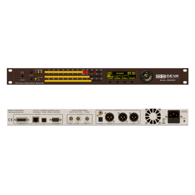 DB4004 имеет два отдельных входных антенных BNC-коннектора, которые могут быть запрограммированы на переключение между отдельными антеннами. DEVA предупреждает пользователей не превышать уровень 100 dBuV на антенных входах без использования внешнего аттенюатора. RF-сигналы оцифровываются на уровне промежуточной частоты с использованием алгоритмов цифровой обработки сигналов. По данным производителя, оцифровка на входе дает высокую стабильность измерений в течение долгого времени. Вы можете даже вывести данные частоты появления ошибочных битов на сигналах RDS и увидеть ситуацию в реальном времени.