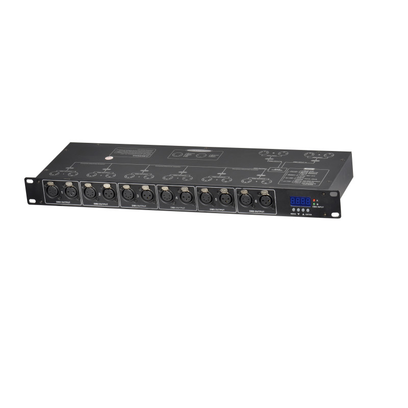 2 DMX входа + 6 DMX выходов, разъемы 3pin и 5pin XLR.