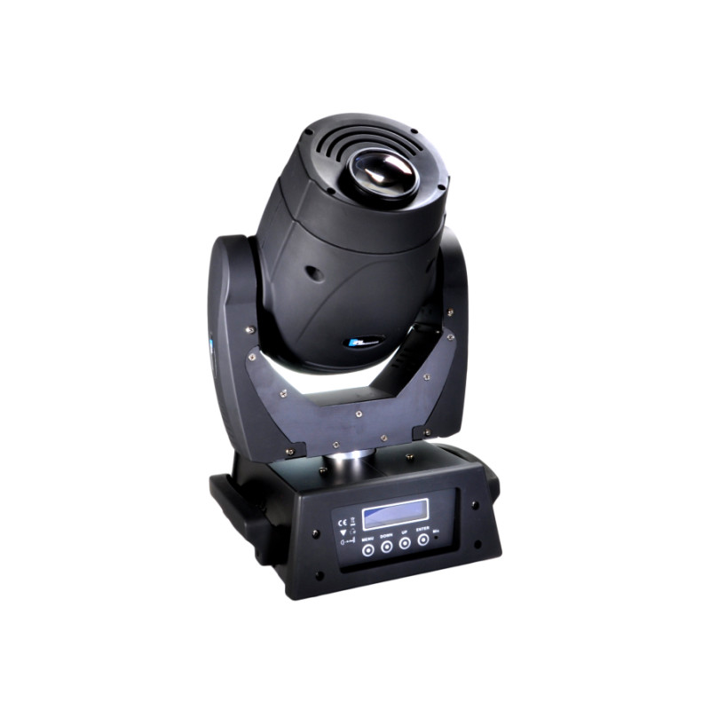 Динамическая голова-спот с супермощным светодиодом 150 Ватт. Световой поток сравним с лампой в 700 Ватт! Прибор обладает большим количеством функций: 1 вращающаяся призма, эффекты стробирования и «пульсации», 1 колесо вращающихся и 1 колесо статичных гобо. Управляемый по DMX ирис и фокус. Высокая скорость движения и точное позиционирование. Предусмотрены макросы по цвету и позиции, функция Reset. Управление — 16 каналов DMX.