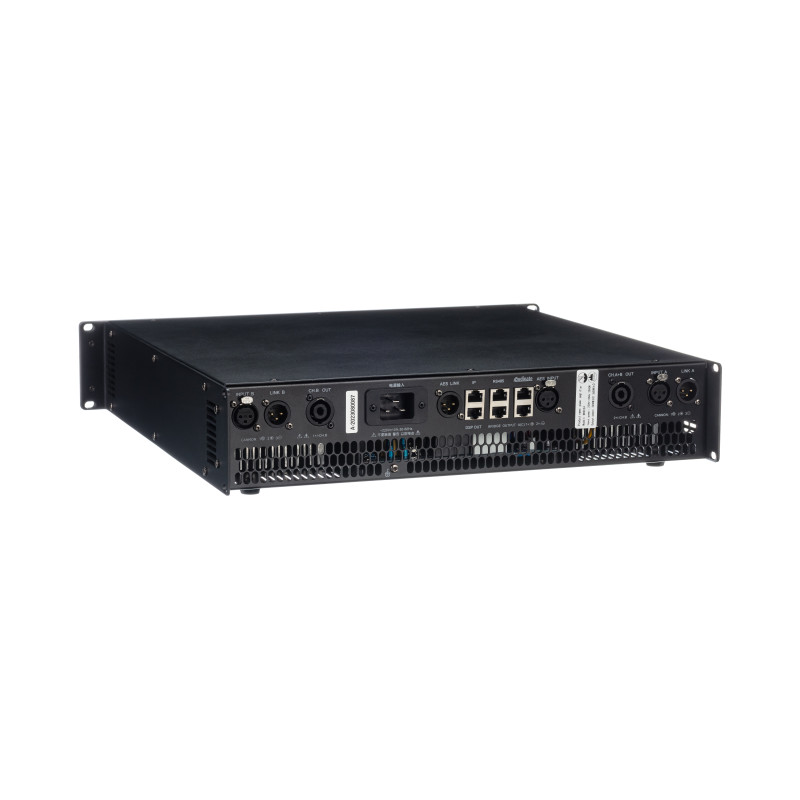 Принадлежит к TD-классу усилителей с импульсным источником питания и поддерживает протоколы связи Dante и AES/EBU.