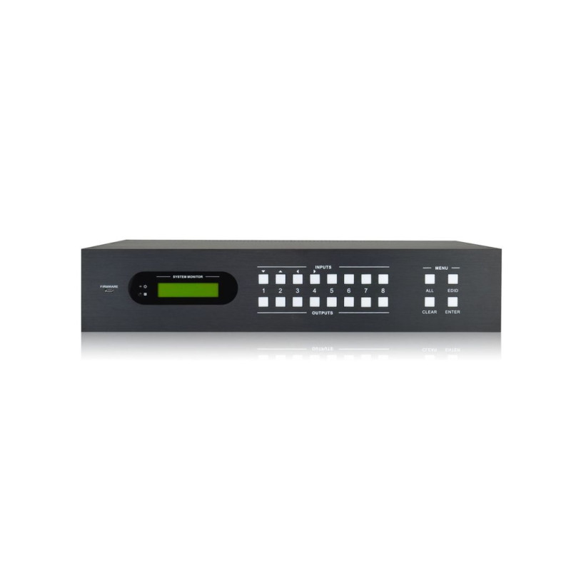 DIGIS MABT-88N Высококачественный матричный коммутатор 8x8 для преобразования сигналов HDMI в HDBT и может передавать его по кабелю на витой паре на расстояние до 70 метров. Он позволяет соединить любой из входов с любыми выходами или со всем выходам сразу. Прибор выполняет компенсацию АЧХ кабеля и перетактирование сигнала. Модель имеет расширенные фвозможности управления и осуществления предварительного просмотра контент