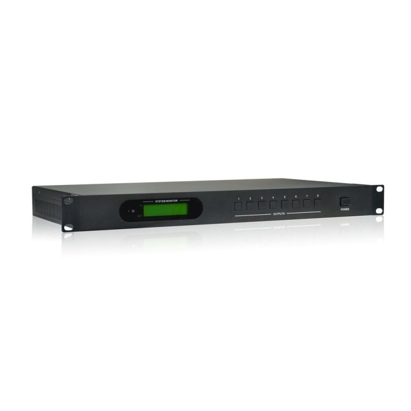 DIGIS MAMI-88 Высококачественный матричный коммутатор 8x8 для сигналов HDMI. Он позволяет соединить любой из входов с любыми выходами или со всем выходам сразу. Прибор выполняет компенсацию АЧХ кабеля и перетактирование сигнала.