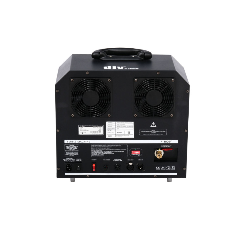 POPO-1000Y состоит из двух генераторов и может производить большое количество пузырей. Пластиковая емкость для жидкости гарантирует отсутствие ржавчины и протечек. Расстояние и объем выпускаемых пузырей можно контролировать вручную, с помощью пульта дистанционного управления W-2 или DMX.