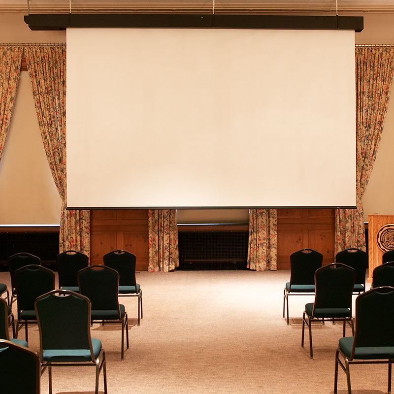 Размеры достигают 20' x 20' или 25' по диагонали. Деревянный корпус можно полностью вмонтировать в потолок или оформить в соответствии с дизайном помещения. Полотно полностью скрыто в корпусе когда не используется. Экран опускается и фиксируется на любой длине. Мотор установлен на резиновых вибрационных изоляторах, которые обеспечивают его тихую работу.