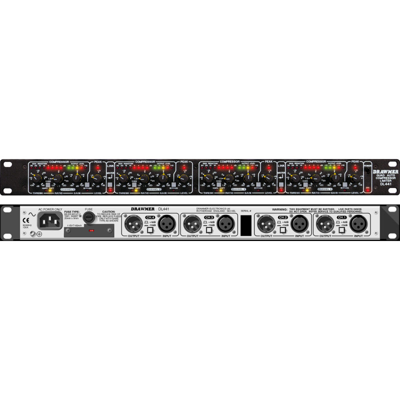 В этой модели, занимающей в рэке объем 1U, объединены четыре канала автоматической компрессии и лимитирования. Таким образом, Drawmer DL441 обеспечивает полноценное управление динамическими характеристиками сигнала с минимальными временными затратами на предварительную настройку.