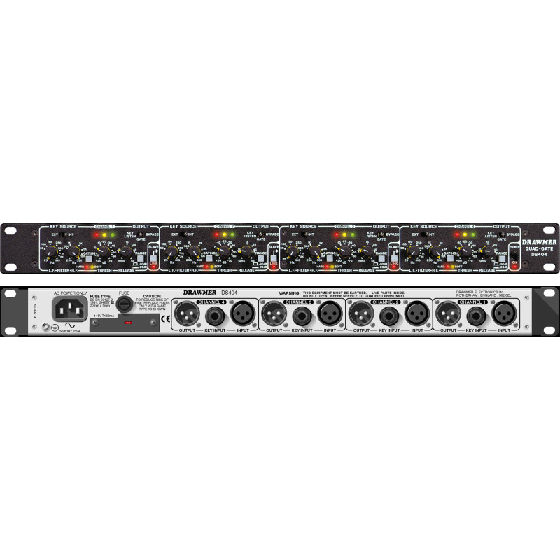 В результате многократной модернизации базовой модели DS 201 специалисты Drawmer добились дальнейшего улучшения эксплуатационных характеристик и разработали четырехканальный нойс-гейт DS 404.